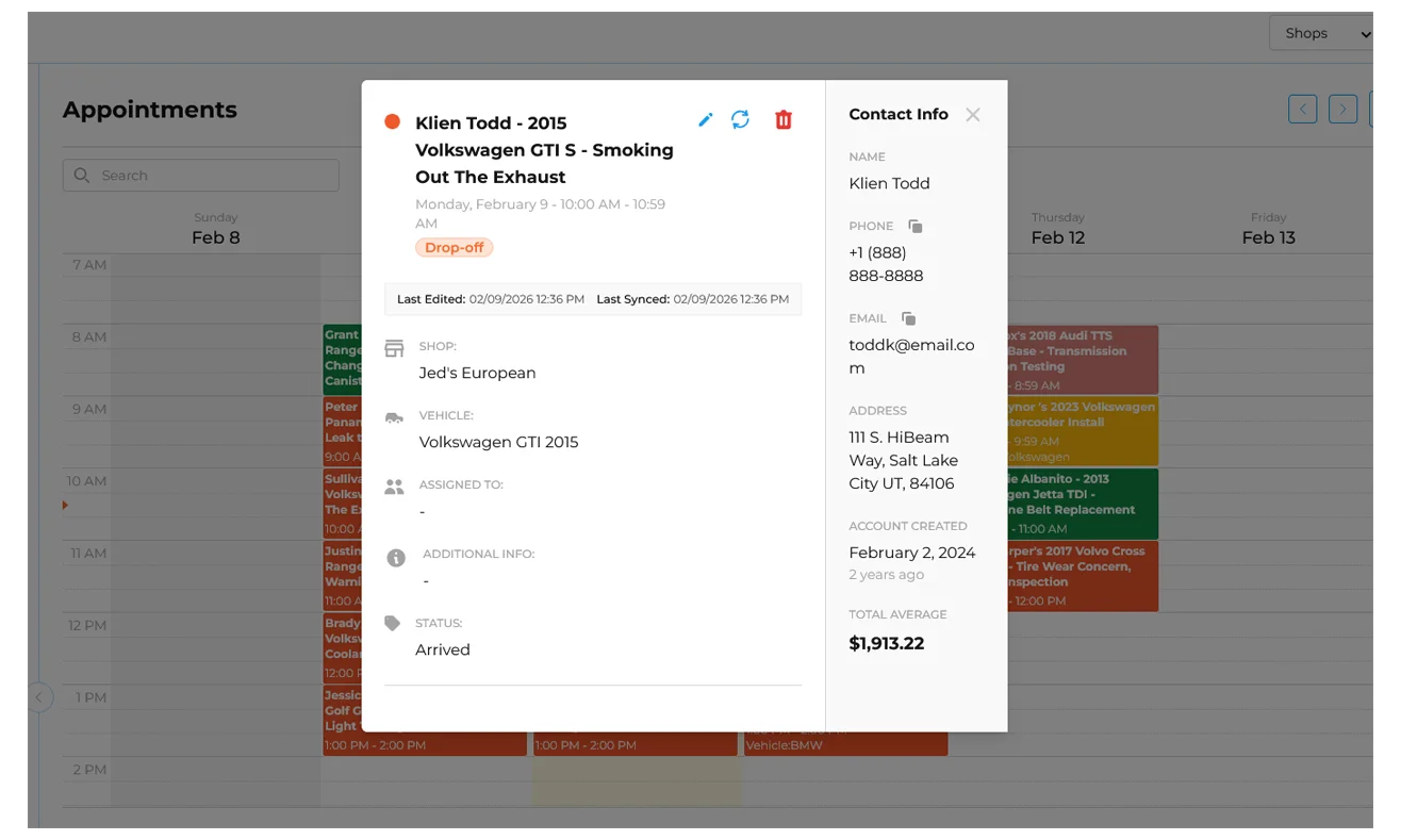 Appointments integrated into your shop management system and customer records. Have all the information for your customer and their appointment at your fingertips.