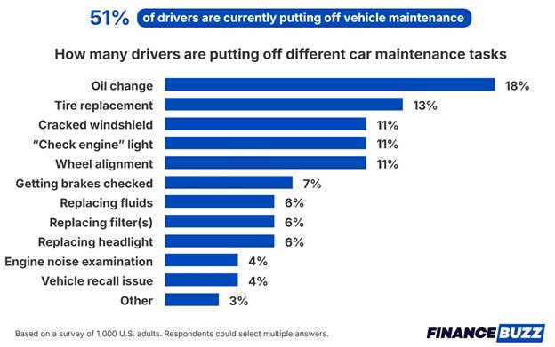 - 51% of drivers are currently aware of maintenance their vehicle needs but are putting it off